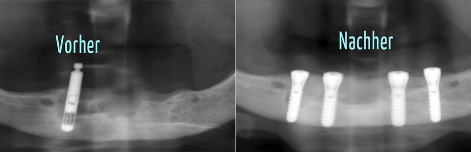 Wir zeigen Ihnen an dieser Stelle Patientenfälle, die vorbehandelt in die Praxisklinik für dentale Implantologie gekommen sind und für die wir im Rahmen einer Weiterbehandlung eine Lösung gefunden haben. In vielen Fällen haben wir festgestellt, dass die Misserfolge vorhersehbar und vermeidbar gewesen wären.
